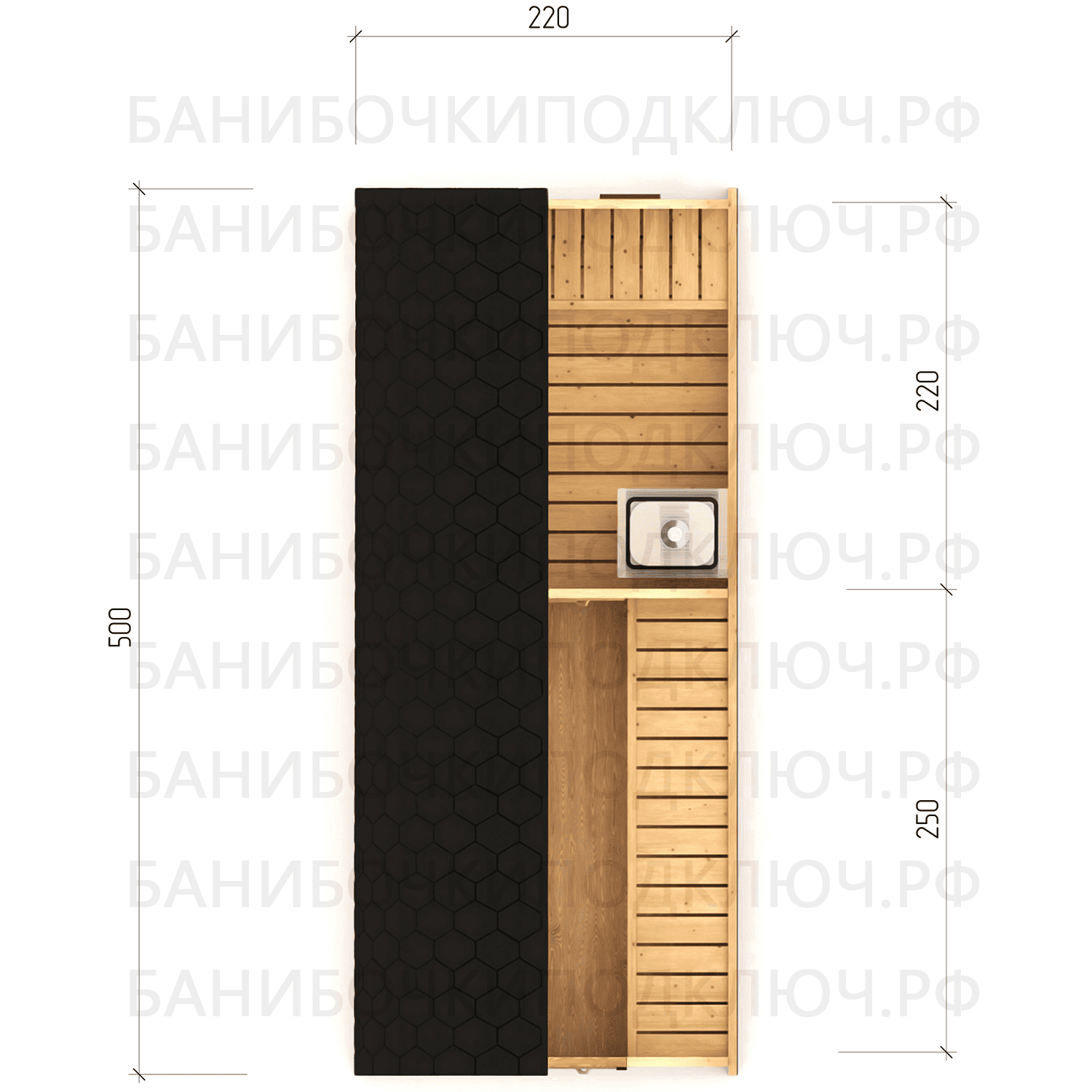 парилка - 220 см, мойка - 120 см, предбанник - 220 см